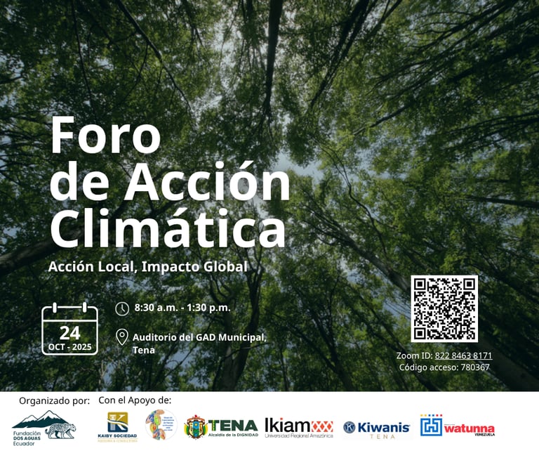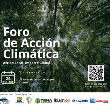 El próximo 24 de octubre de 2025, en el marco del Día Mundial de Acción Climática, Tena se convertirá en el epicentro del diálogo ambiental amazónico con la realización del Foro de Acción Climática: Mitigación del Cambio Climático.